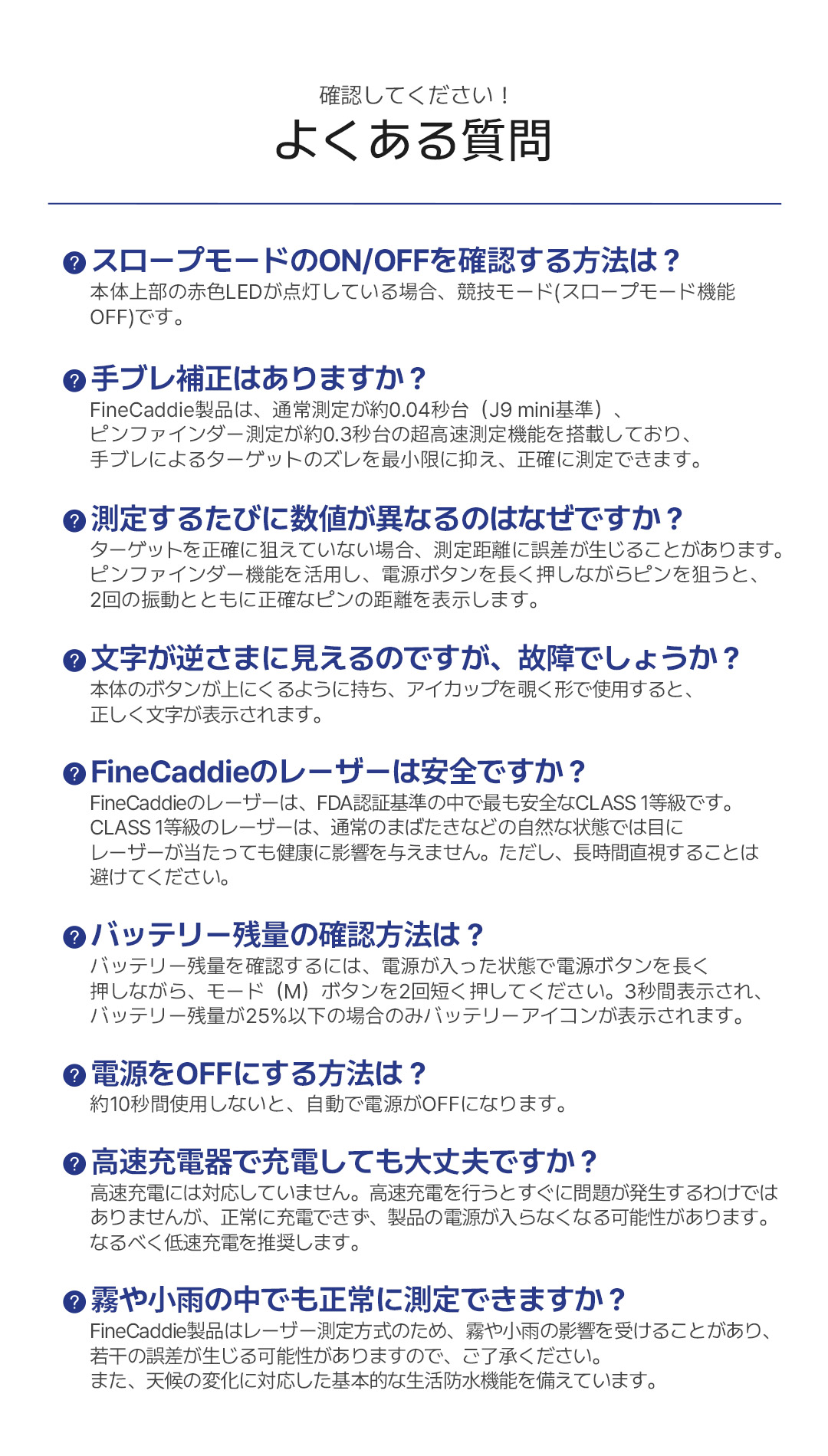 | 認証番号 | モデル名: J9 製造者: (株)ファインデジタル KC 認証番号: R-R-FDK-FineA005 バッテリー申告番号: ZU10701-17002U 名称: レーザーゴルフ距離測定器 製造国: 中国 製造年月: 別途表記 |