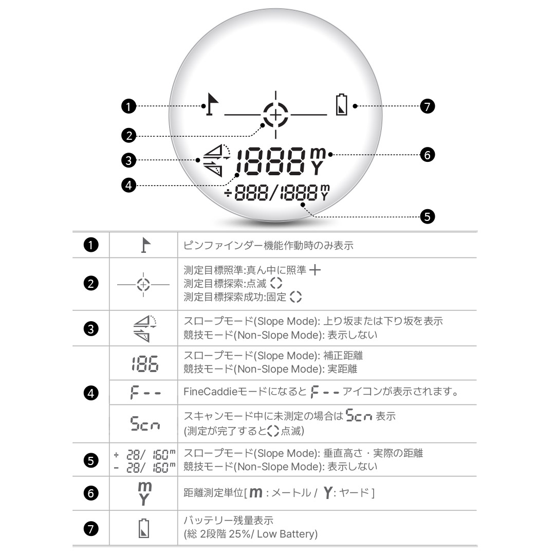 | 測定単位 | Y(ヤード), m(メートル) | |