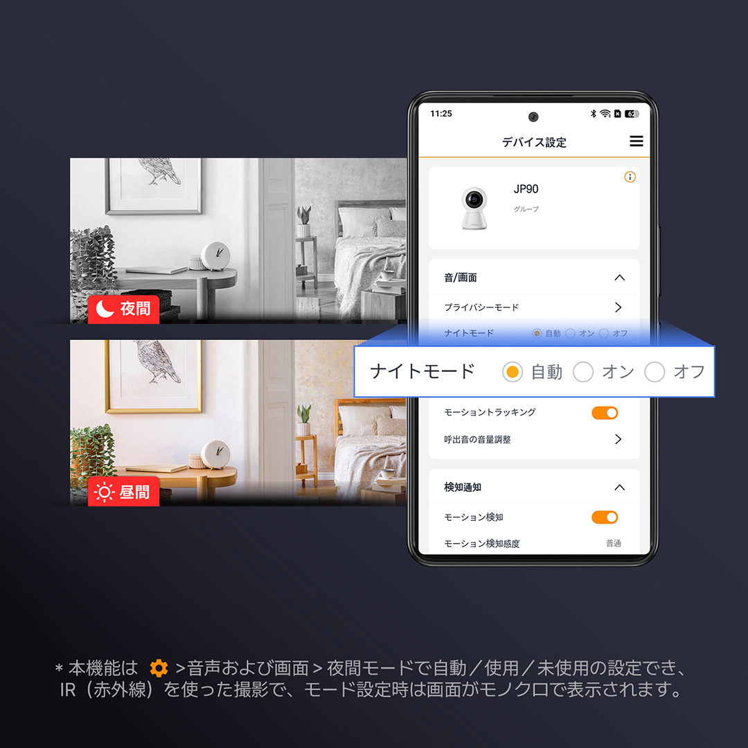 | 夜間モード | AUTOナイトビジョンIR(夜間モード自動切替対応) |